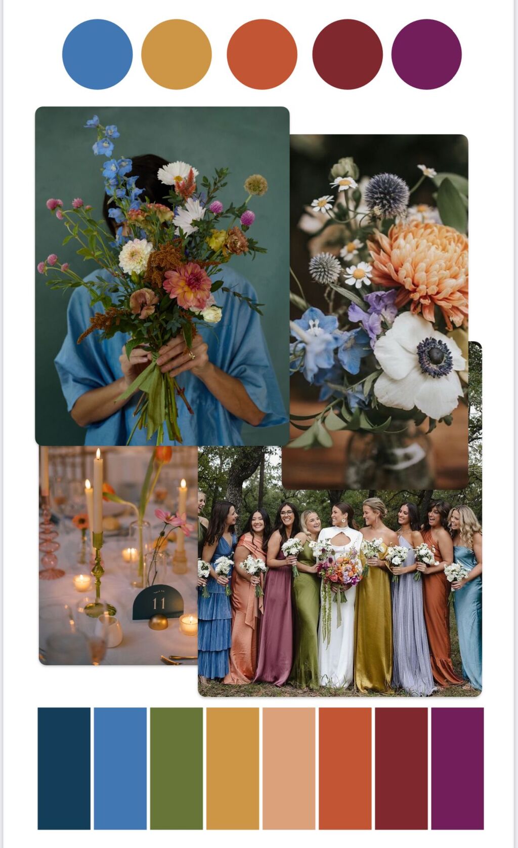 Voor de bruiloft hebben wij een kleurenschema samengesteld. We zouden wij het superleuk vinden als jullie meekleuren met onze dag! Hiernaast kunt u wat inspiratie vinden en kleuren die bij onze dag passen.