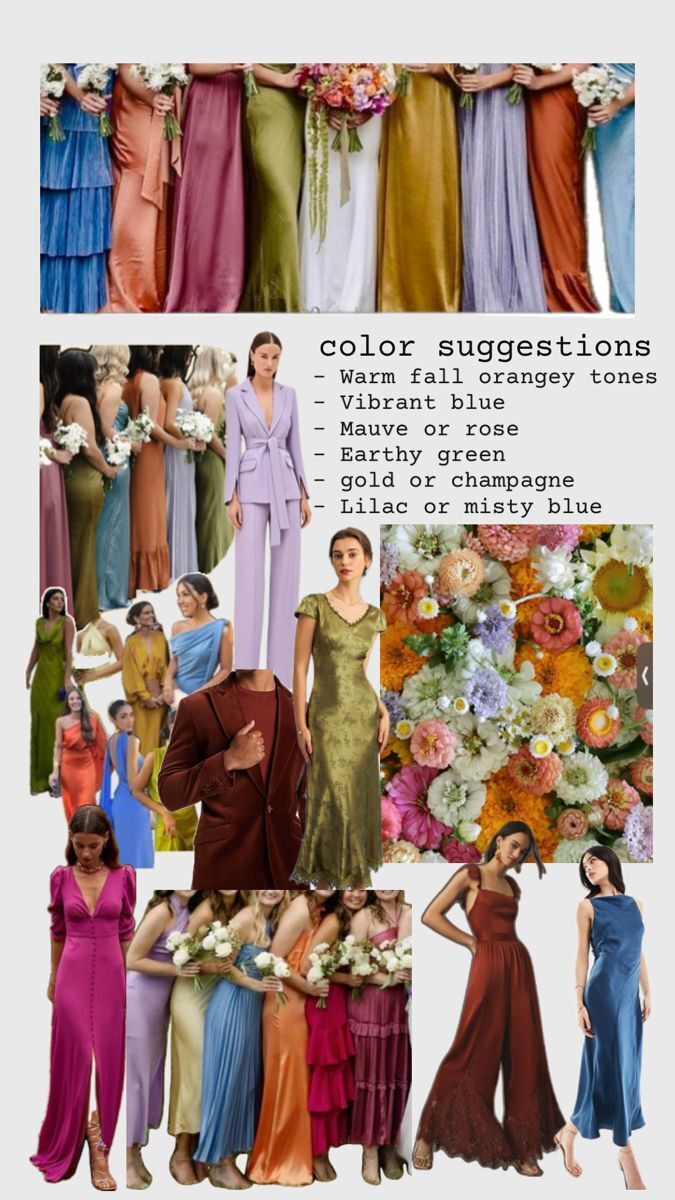 Voor de bruiloft hebben wij een kleurenschema samengesteld. We zouden wij het superleuk vinden als jullie meekleuren met onze dag! Hiernaast kunt u wat inspiratie vinden en kleuren die bij onze dag passen.